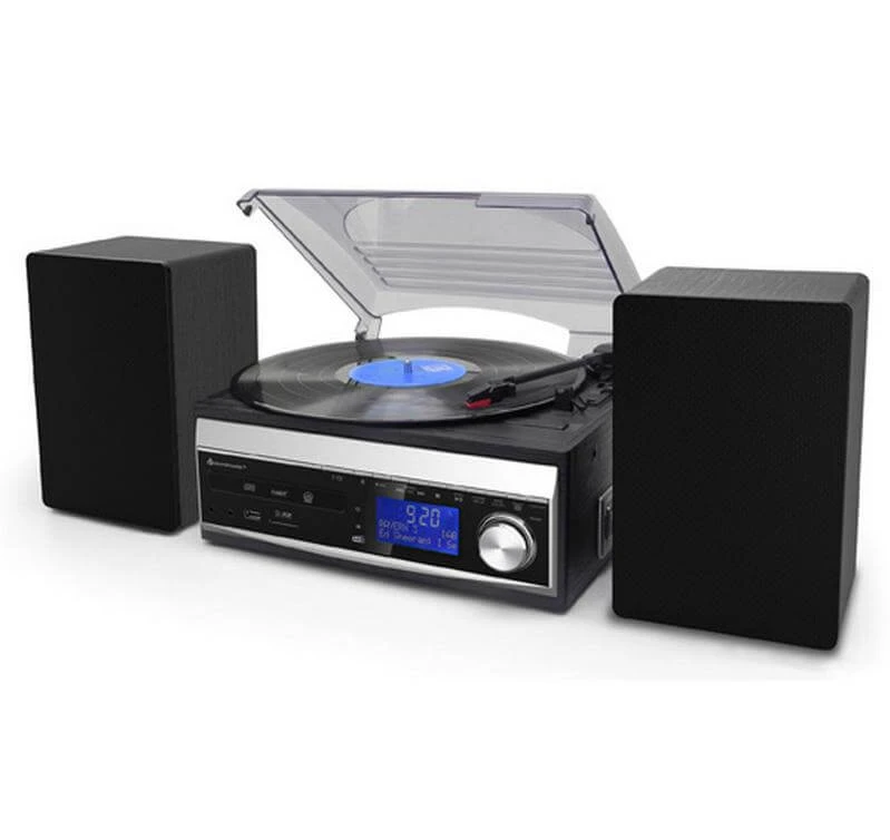 Tuner radio: FM, DAB+, Couleur de détail: Argenté, Noir, Catégorie de haut-parleur: Enceinte d’étagère, Possibilités de connexion: Câble Aux, USB, Compatibilité du système: Sans, Fonction radio/streaming: Télécommande, USB, Fonction réveil, Slot de cartes SD, Magnétophone, Mémoire d’émetteur, Lecteur CD, Prise AUX, Tourne-disque, Minuterie, Écran LCD